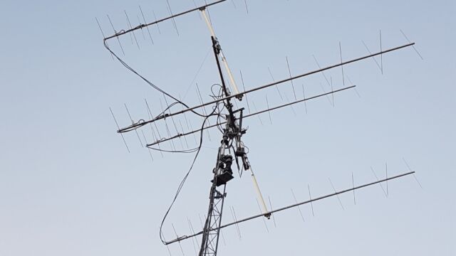 After operating for many years my home made 4 x 12el. DK7ZB antennas I decided to change them for a 4 x 9el./Xpol H/V antenna system made by DF7KF. Reason was the heavy polarization changing of the EME signals that I recognized over the past years. There are phases you do not hear anything with horizontal polarization over hours and days you hear signals with only horizontal polarization so what of weak that makes you believe something is wrong with your antennas. My friend Udo/DK5YA offered me his 4×9 system for a nice price because he changed to a bigger system so I made the decision.